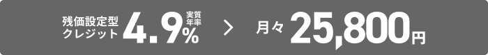 上記お支払い例は2025年11月の一例です。上記お支払い例は、初回お支払い月を2026年1月、初回ボーナス月を2026年1月(以下ボーナス月は7月・1月)で計算した一例です(ボーナス月は設定がある車両に限る)。※本クレジットは最終回に、@新車に乗り換え、A乗り続ける(最終回お支払い額を一括または再クレジットでお支払い)、B車両を返却 のいずれかをお選びいただけます。@、Bの場合、内外装キズや走行距離などの確認事項があります。事前に定めた条件を超える場合には、その差額分を別途ご負担いただきます。詳しくは営業スタッフまでお問合せください。
