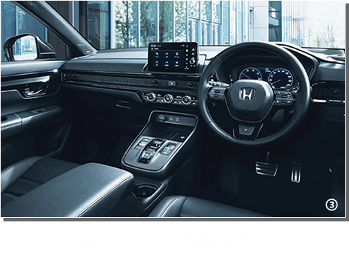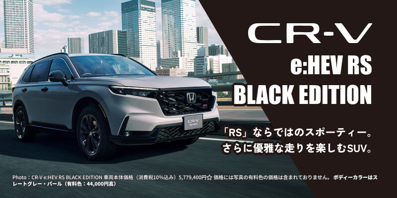 Photo:【1】■ドライブモードは運転状況などにより変更できない場合があります。【2】■e:HEV RS BLACK EDITIONに標準装備。■Honda SENSING 360およびHonda SENSINGは、ドライバーの運転支援機能のため、各機能の能力(認識能力・制御能力)には限界があります。 各機能の能力を過信せず、つねに周囲の状況に気をつけ、安全運転をお願いします。車両をご使用になる前に必ず取扱説明書をお読みください。各システムは、いずれも道路状況、天候状況、車両状態等によっては作動しない場合や十分に性能を発揮できない場合があります。■イラストは機能説明のためのイメージ図です。【3】CR-V e:HEV RS BLACK EDITION 車両本体価格(消費税10%込み)5,779,400円★ 価格には写真の有料色の価格は含まれておりません。 ボディーカラーはスレートグレー・パール(有料色:44,000円高) ■メーター類は撮影のため点灯。■画面はハメコミ合成。【4】CR-V e:HEV RS BLACK EDITION 車両本体価格(消費税10%込み)5,779,400円★ 価格には写真の有料色の価格は含まれておりません。 ボディーカラーはスレートグレー・パール(有料色:44,000円高) ■小物類は撮影のために用意したものです。【5】【6】【7】CR-V e:HEV RS BLACK EDITION 車両本体価格(消費税10%込み)5,779,400円★ 価格には写真の有料色の価格は含まれておりません。 ボディーカラーはスレートグレー・パール(有料色:44,000円高)