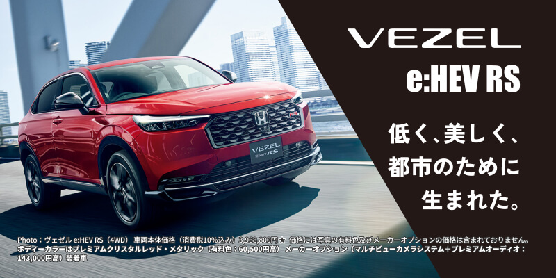 Photo:【1】ヴェゼル e:HEV RS(FF) 車両本体価格(消費税10%込み)3,748,800円★ 価格には写真の有料色の価格は含まれておりません。 ボディーカラーはプレミアムクリスタルレッド・メタリック(有料色:60,500円高)■イラストは機能説明のためのイメージ図です。【2】【3】【4】【5】ヴェゼル e:HEV RS(FF) 車両本体価格(消費税10%込み)3,748,800円★ 価格には写真の有料色の価格は含まれておりません。 ボディーカラーはプレミアムクリスタルレッド・メタリック(有料色:60,500円高)【6】ヴェゼル e:HEV RS(FF) 車両本体価格(消費税10%込み)3,748,800円★ 価格には写真の有料色の価格は含まれておりません。 ボディーカラーはプレミアムクリスタルレッド・メタリック(有料色:60,500円高)■インテリアのルーフライニングおよびピラーの色はブラックとなります。■メーター類は撮影のため点灯。■画面はハメコミ合成です。【7】ヴェゼル e:HEV RS(FF) 車両本体価格(消費税10%込み)3,748,800円★ 価格には写真の有料色の価格は含まれておりません。 ボディーカラーはプレミアムクリスタルレッド・メタリック(有料色:60,500円高)■インテリアのルーフライニングおよびピラーの色はブラックとなります。